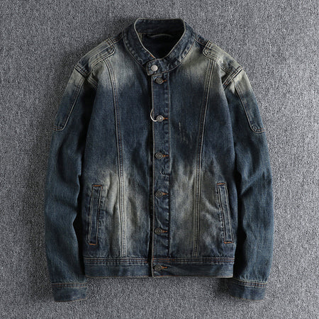 Ride into style with the 0031 vintage motorcycle denim jacket, crafted for men who love fashion and functionality. Perfect for autumn wear, this loose-fit jacket combines washed denim craftsmanship with a stylish set collar design, making it ideal for casual outings, motorcycle rides, or urban streetwear.