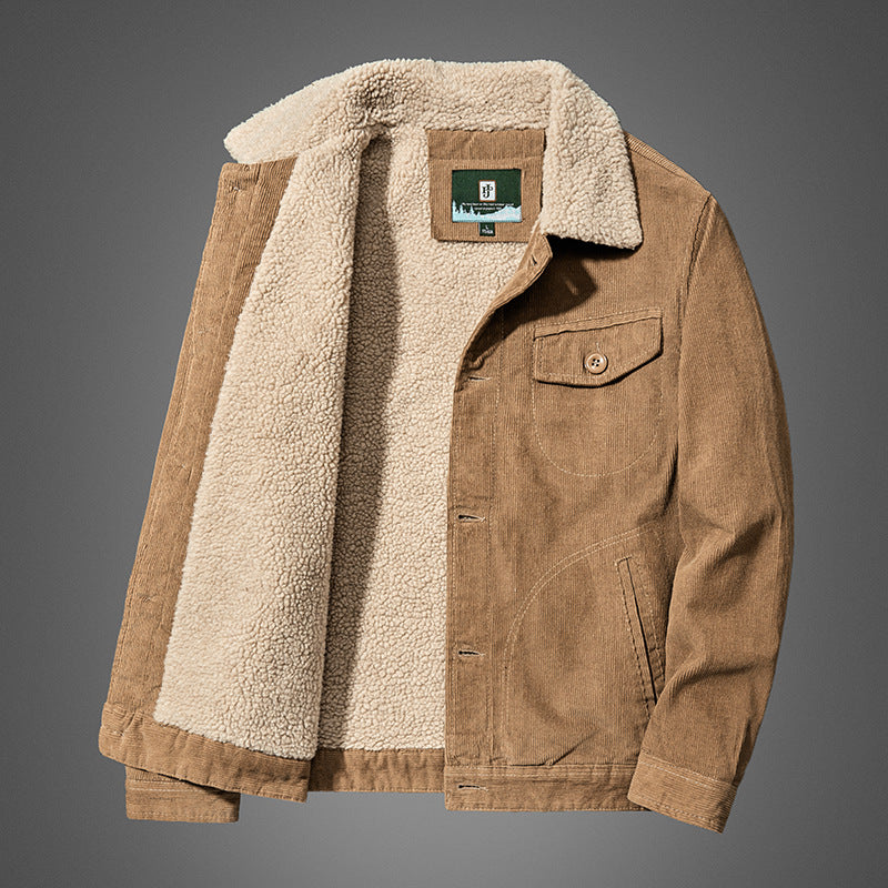 Step into American retro fashion with this 2024 corduroy jacket, lined with thick lamb velvet for ultimate winter warmth. Its sportswear-inspired cut blends casual comfort with a vintage edge, making it a go-to choice for trendy men.