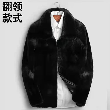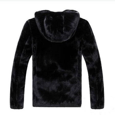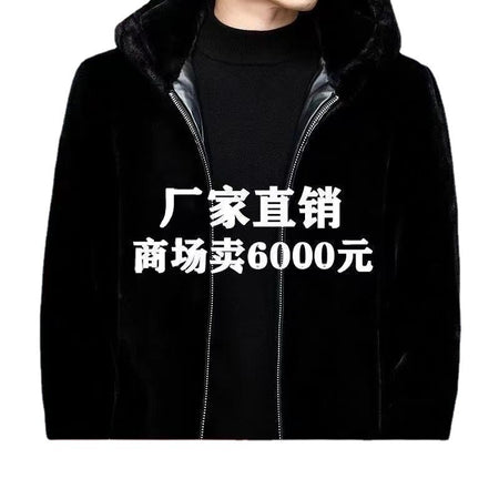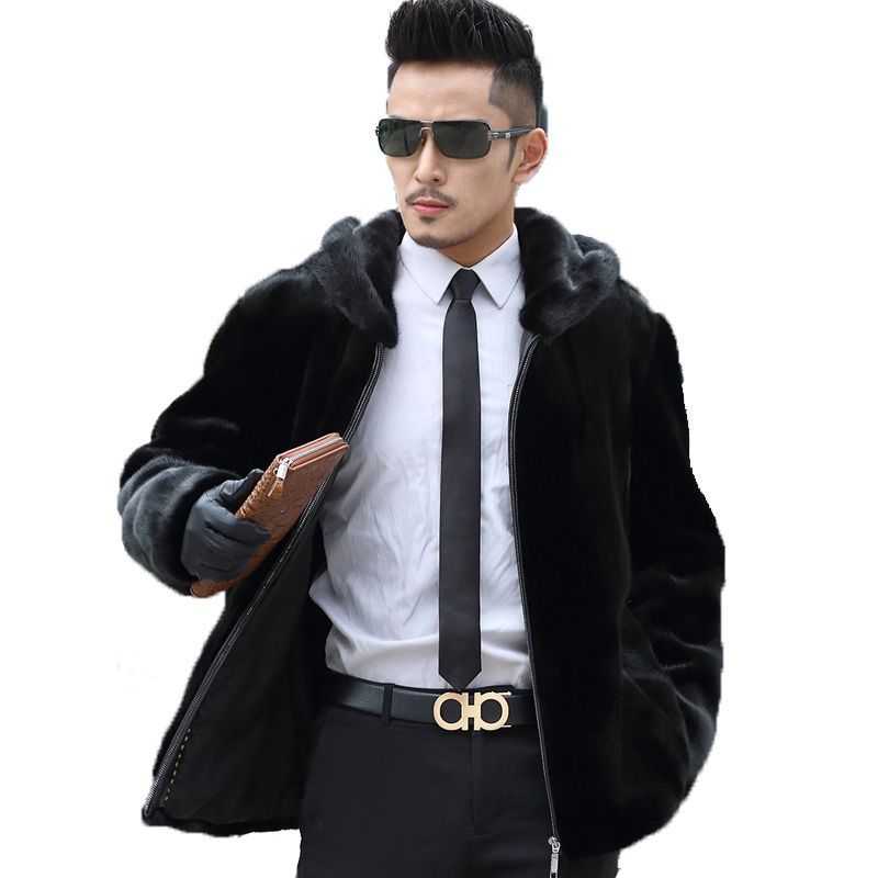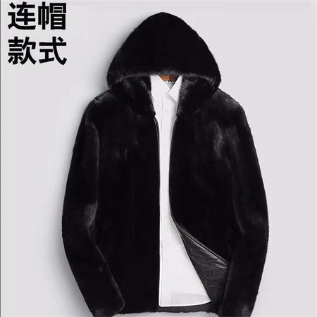 Men’s Hooded Mink Fur Coat Winter Warm Black Jacket
