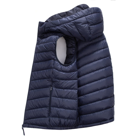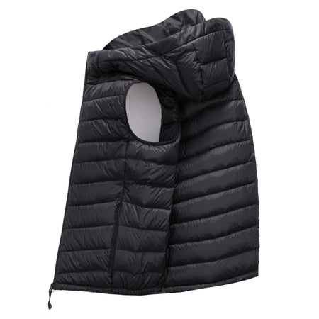 Keep warm in timeless style with this men’s hooded down vest, filled with 90% premium white duck down for lightweight insulation. Designed for autumn and winter layering, it’s the ultimate mix of classic comfort and modern practicality.