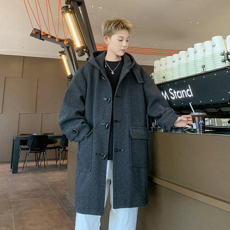 Men’s Woolen Trenchcoat – Mid-Length Casual Loose Winter Coat