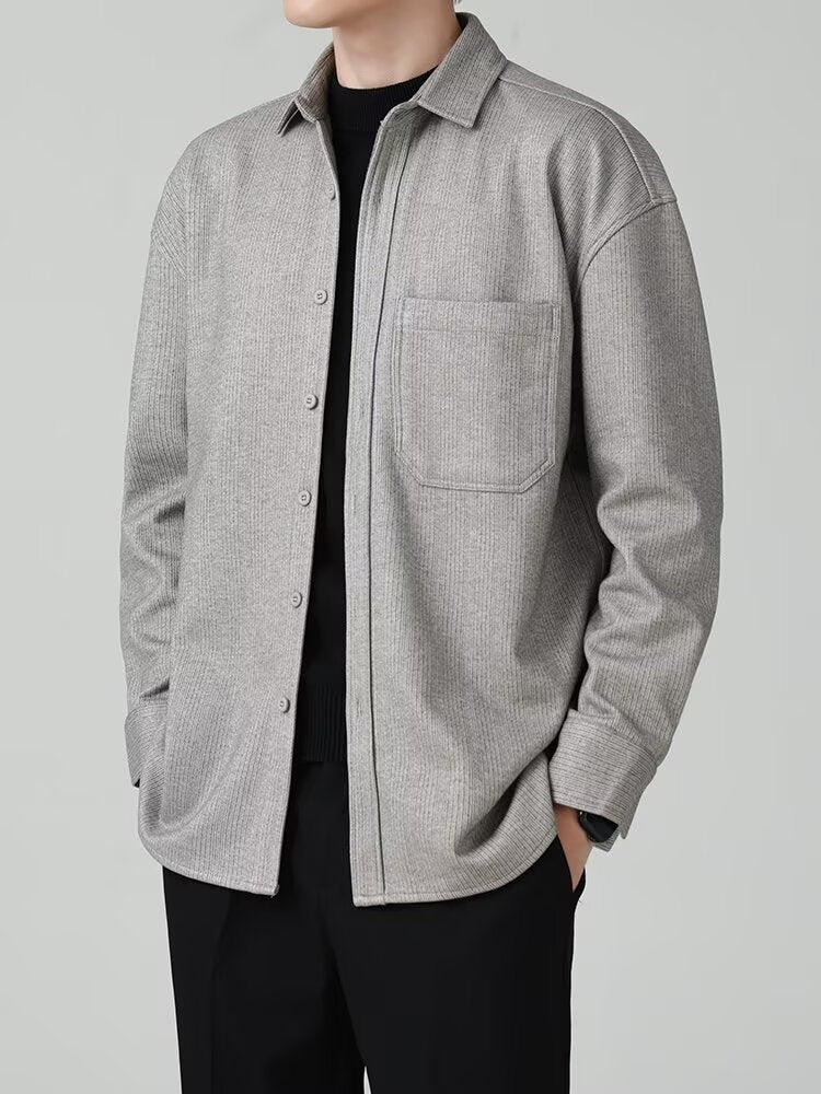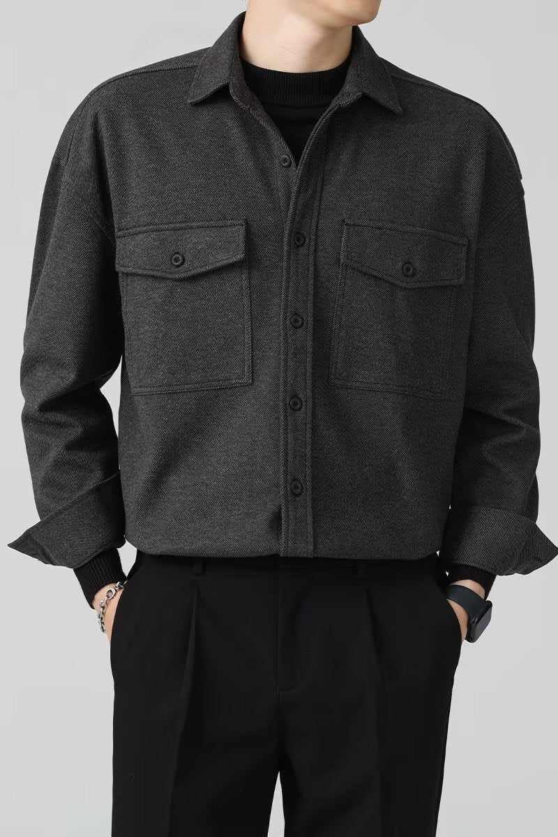 Durable, practical, and stylish—this heavy workwear-inspired woolen overshirt is the perfect spring and autumn layer for men who value functionality with fashion.