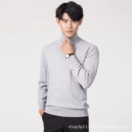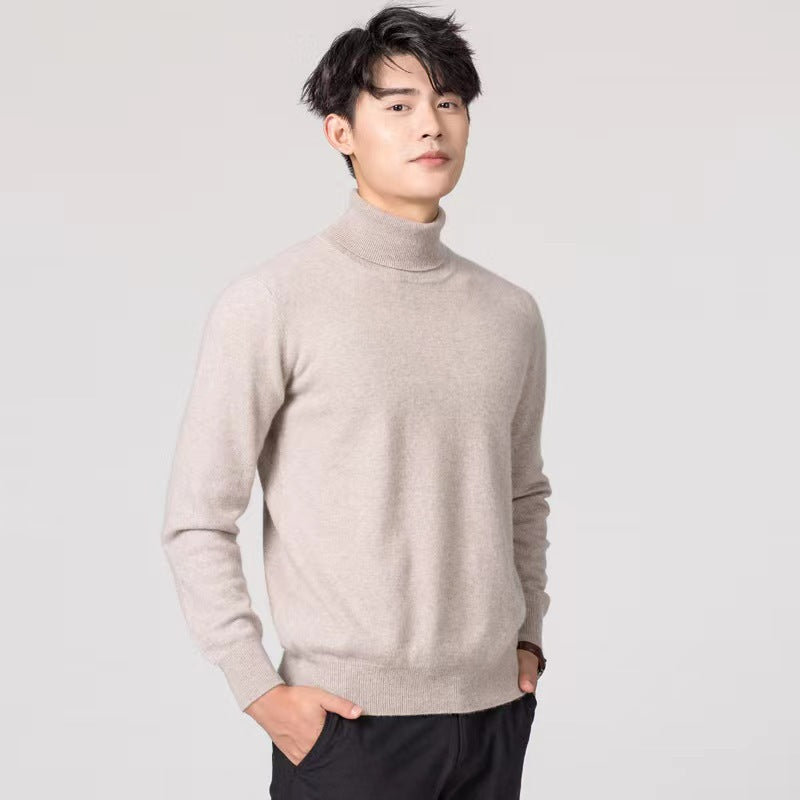 Men’s High Lapel Sweater – Solid Color Turtleneck Knit