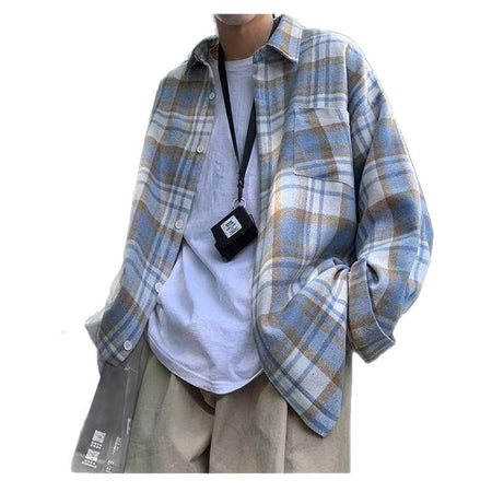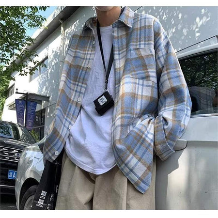 With its Hong Kong-style streetwear influence, this plaid overshirt is perfect for men who like relaxed, trendy looks.
