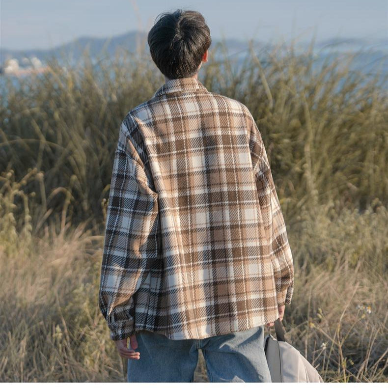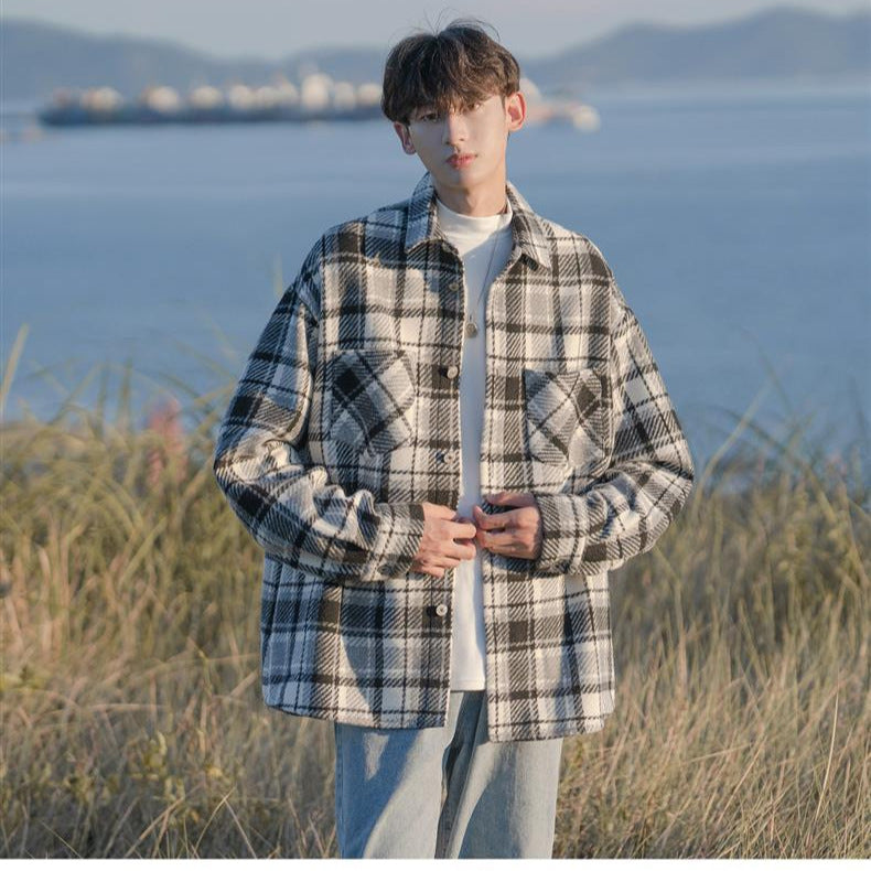 Woolen Plaid Overshirt Men’s Hong Kong Style Jacket