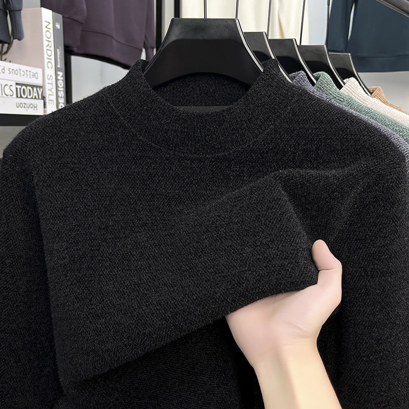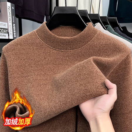 2025 Men’s Plush Half-High Collar Knitted Sweater Warm