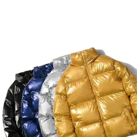2025 Men’s Winter Shiny Stand-Collar Cotton Coat – Short Korean Style