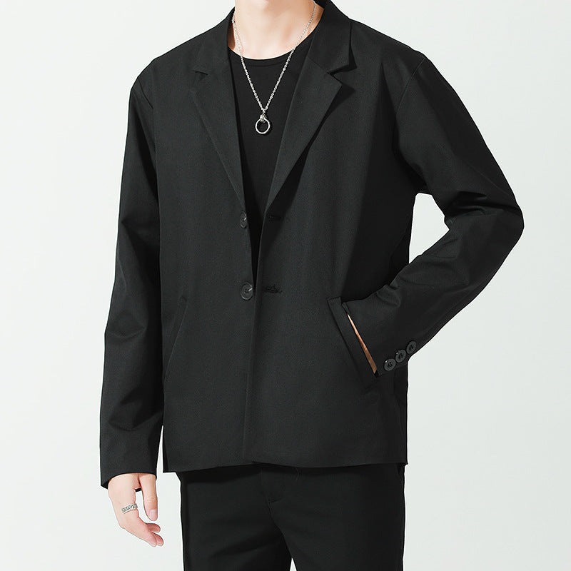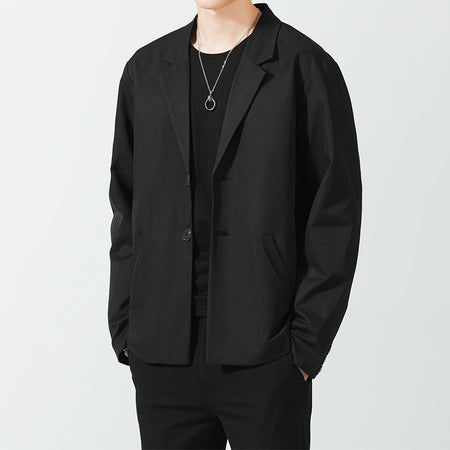Keep your look clean and effortless with this Japanese-style men’s casual suit jacket. Designed for spring and autumn, its loose cut and solid color design bring minimal elegance with everyday comfort.