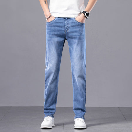 Stay cool and stylish this summer with 2025 Summer Ice Silk Thin Jeans for Men. Crafted from premium ice silk fabric, these pants are lightweight, breathable, and soft to the touch, making them perfect for hot summer days. Featuring a straight slim-fit cut with stretch, they combine comfort and trendiness for young, fashion-conscious men.