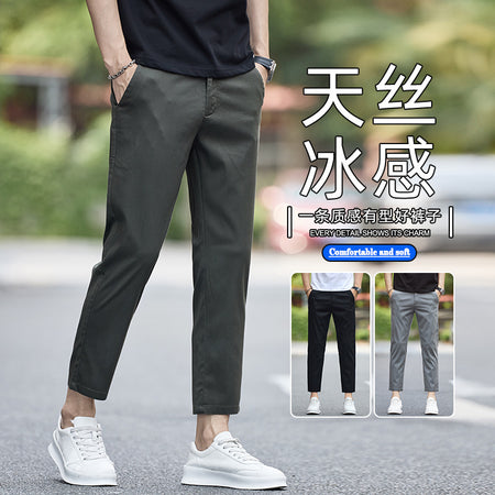 Men’s Lyocell Slim Cropped Pants – 2025 Elastic Tencel Casual