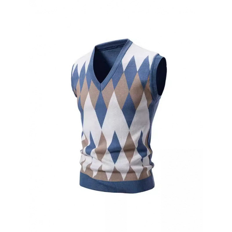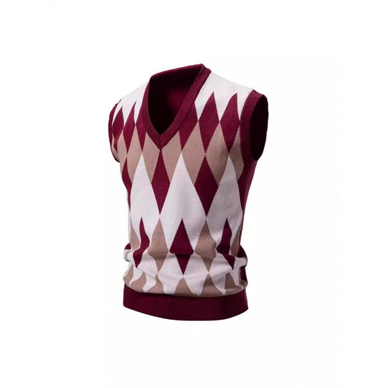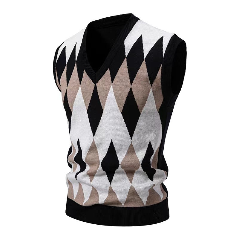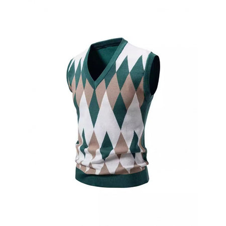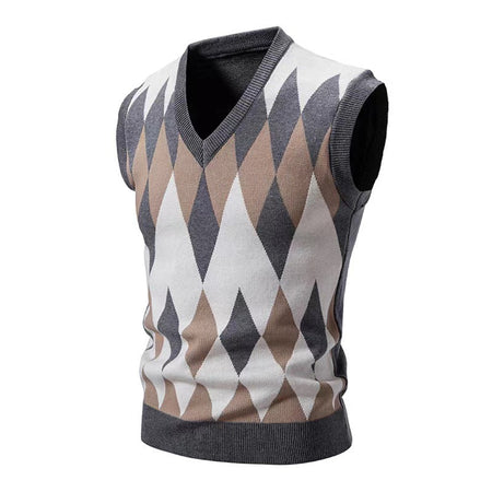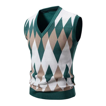 Sleeveless Sweater – Plaid V-Neck Vest for Men
