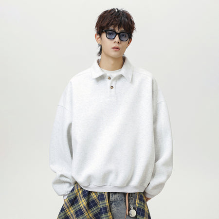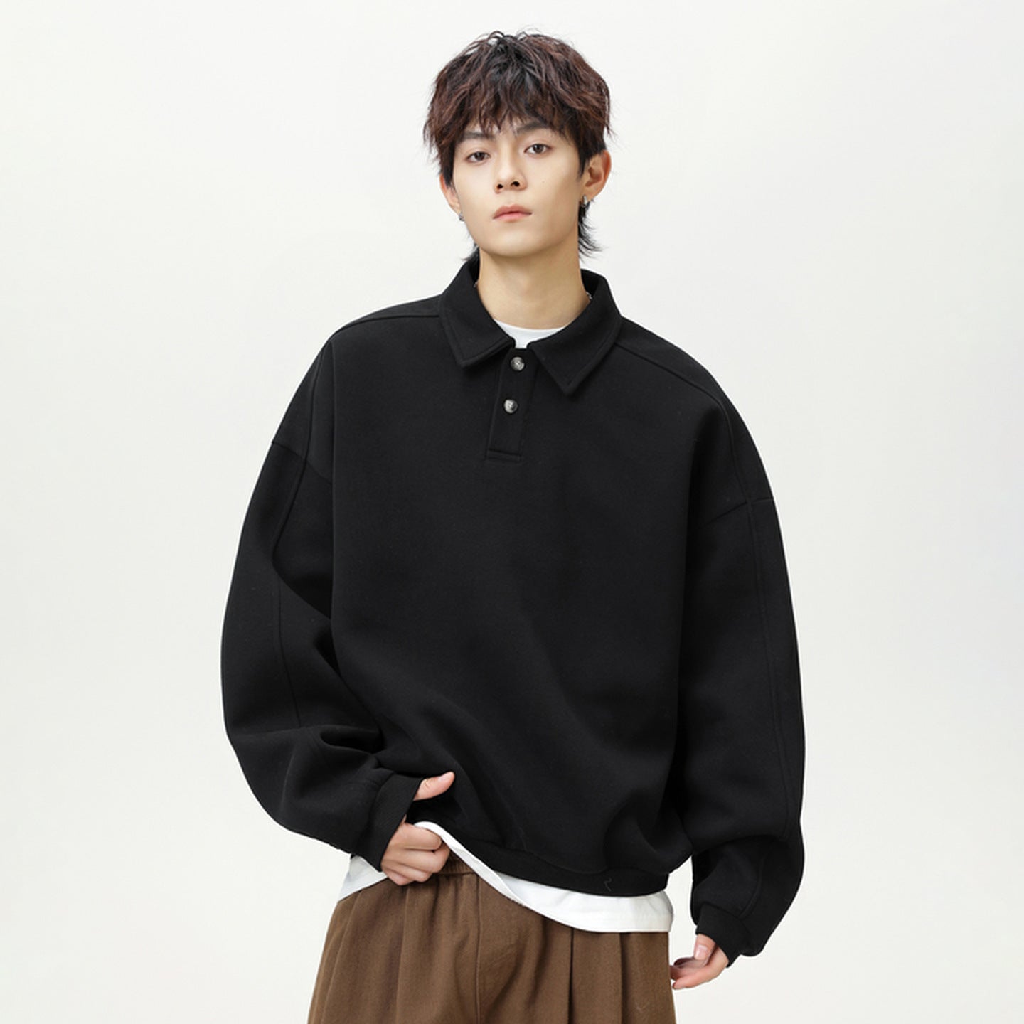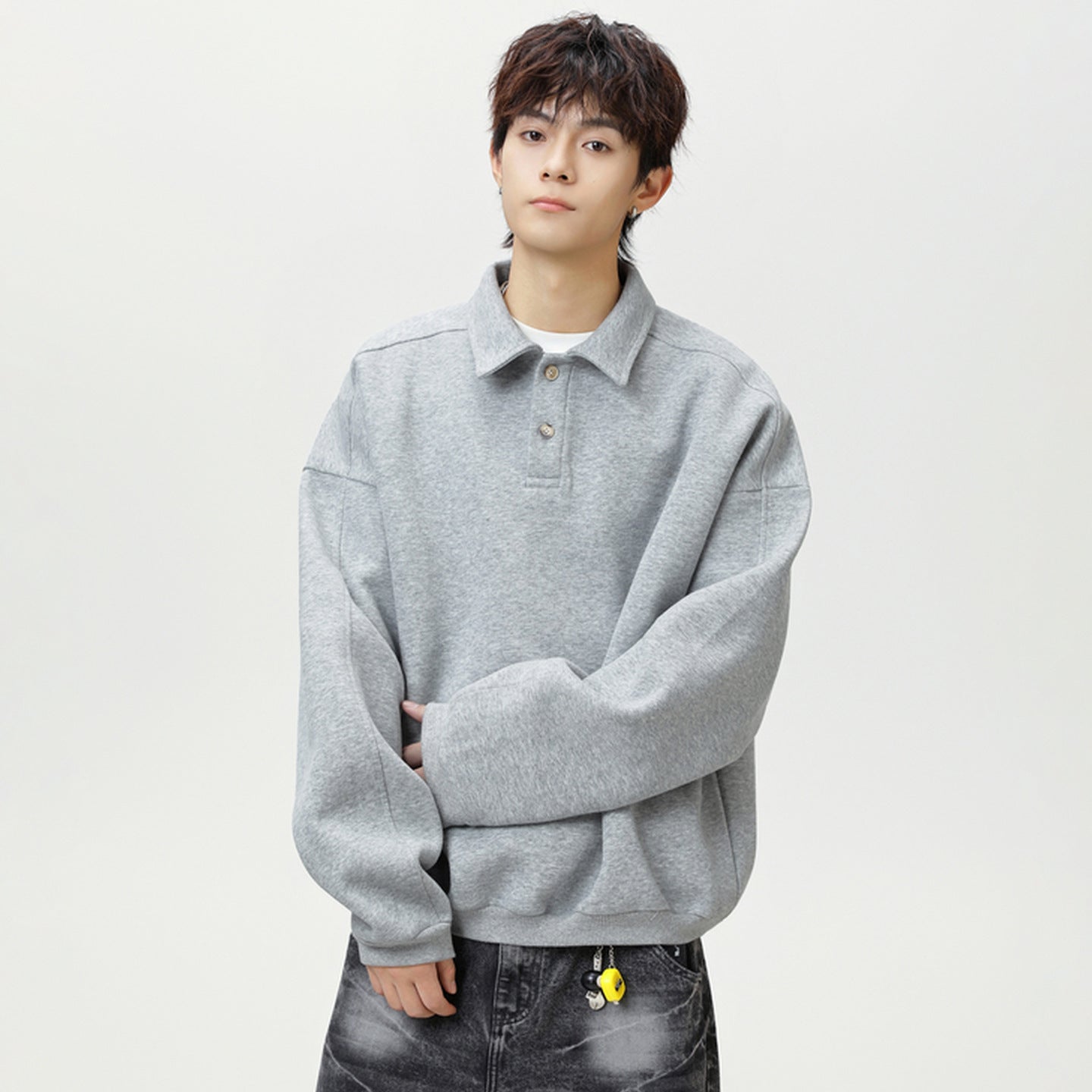 Men’s Heavyweight Lapel Sweatshirt – Retro Polo Pullover