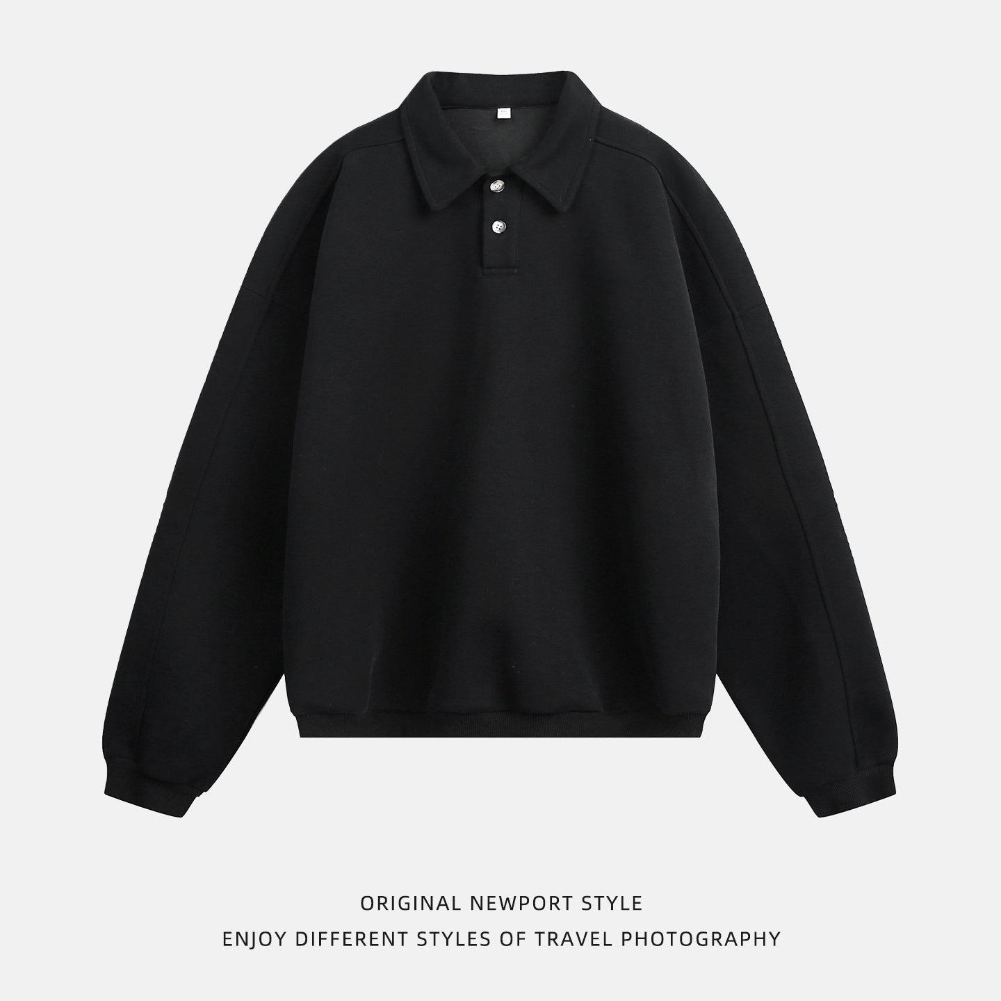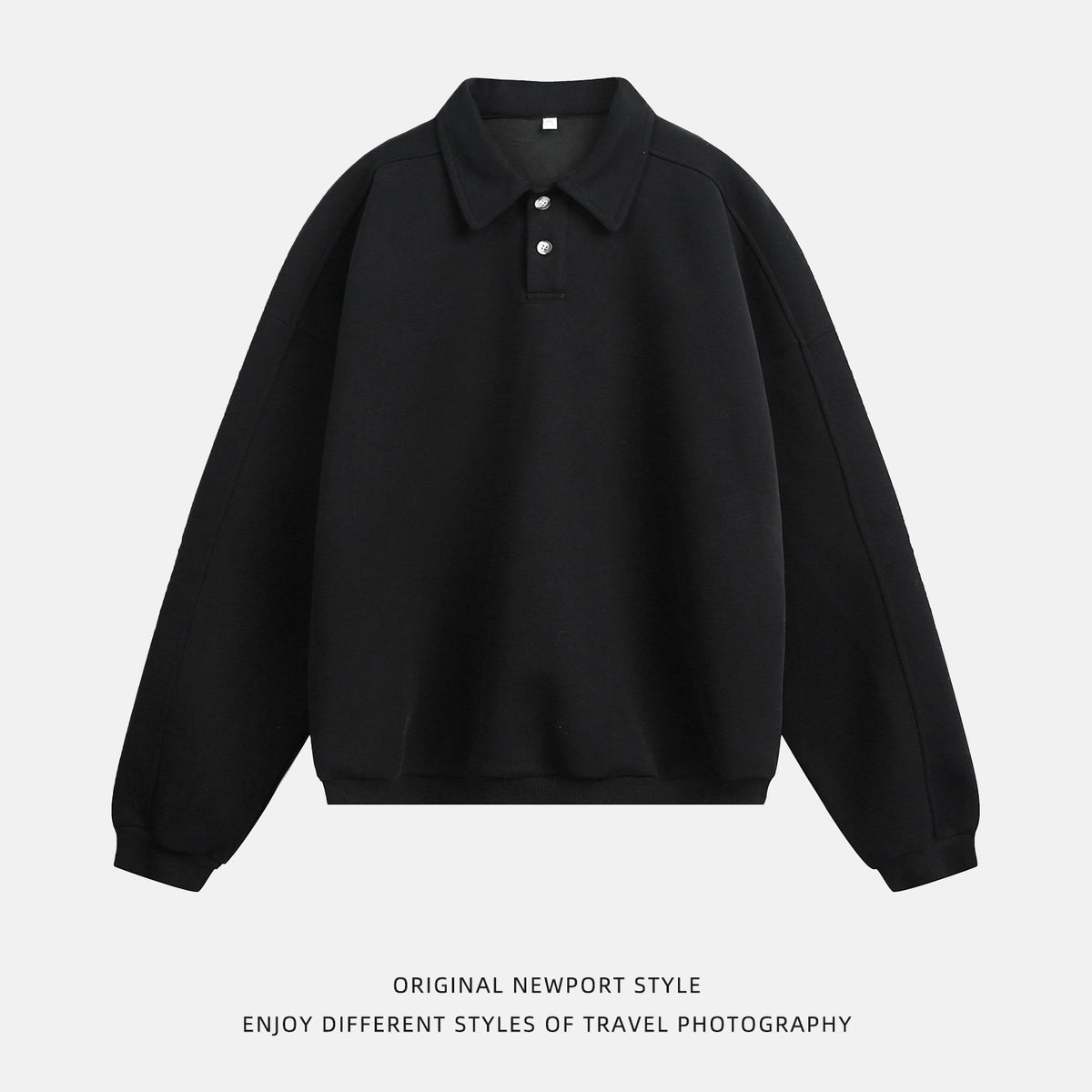Add a touch of timeless charm to your wardrobe with this 380g heavyweight lapel sweatshirt. Designed with a retro silhouette and an old-money luxury vibe, this long-sleeved polo-style pullover offers both durability and sophistication. 🍂