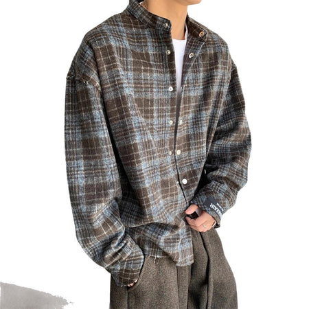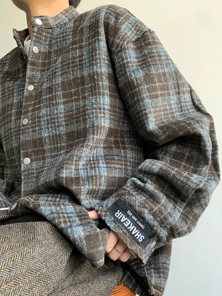 American Retro Men’s Plaid Overshirt Woolen Jacket