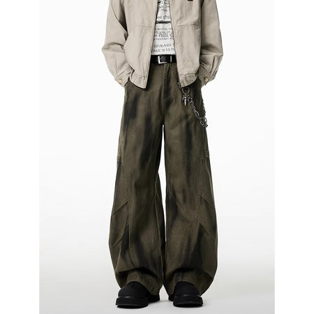 American Dirty Dyed Cargo Pants Men’s Wide Leg Jeans