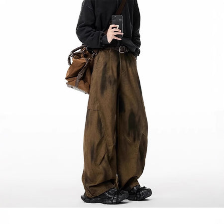 Stand out this summer with these American-style dirty dyed cargo pants, designed for both men and women. Featuring a wide-leg cut and casual scimitar-inspired wash, these jeans bring effortless retro cool to your wardrobe.