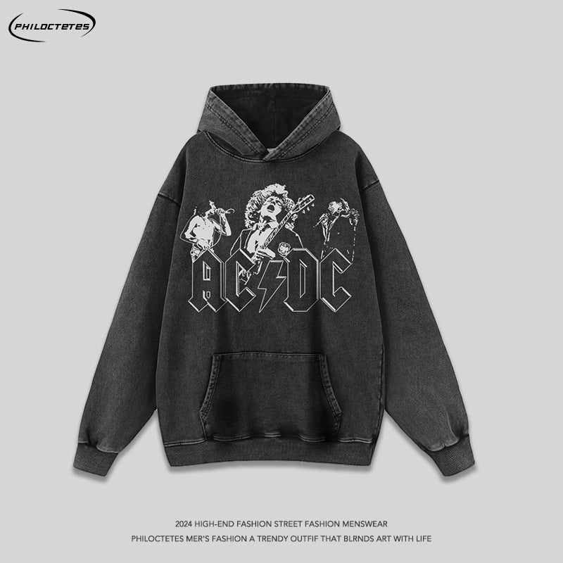 Unisex Rap Rock Hoodie โ Washed American Hip-Hop Sweatshirt