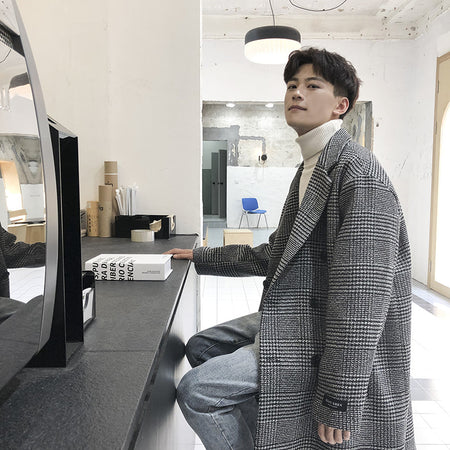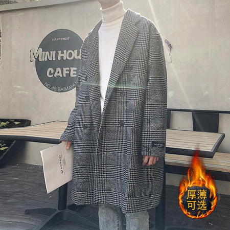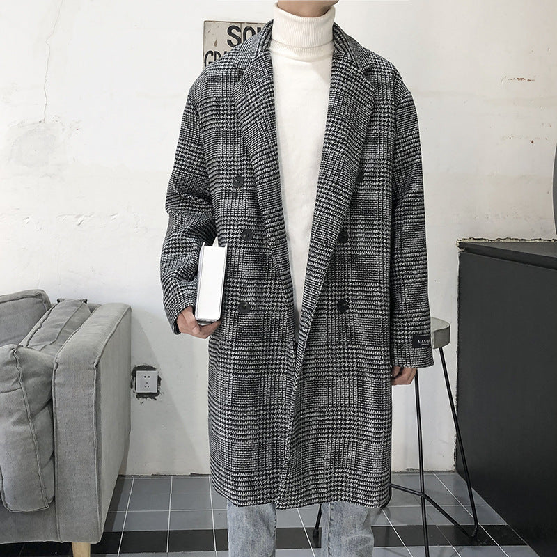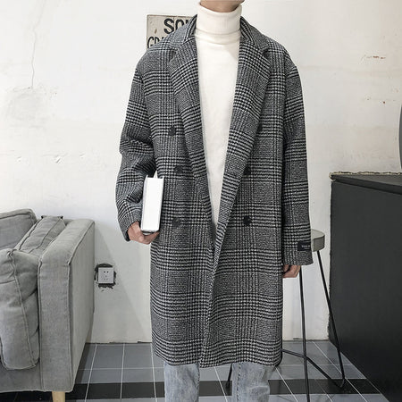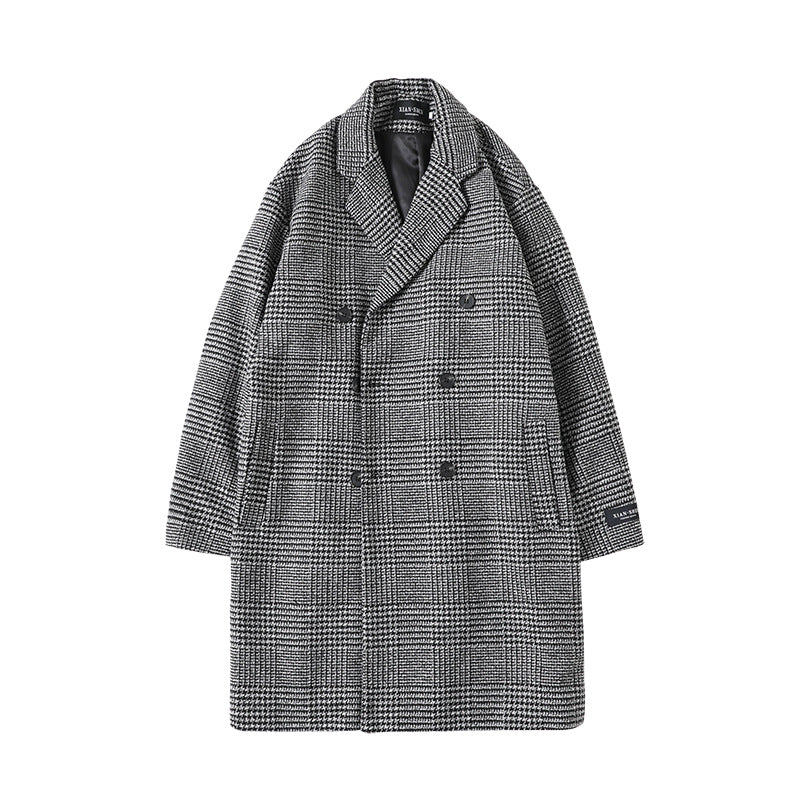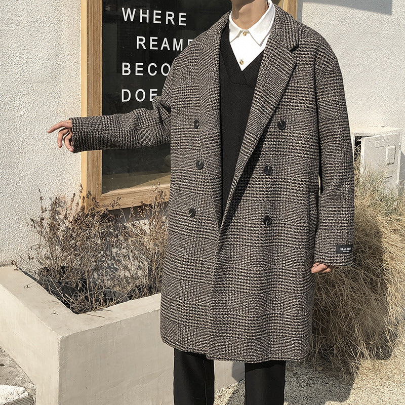 Men’s Retro Plaid Wool Coat – American-Style Spring/Autumn Jacket