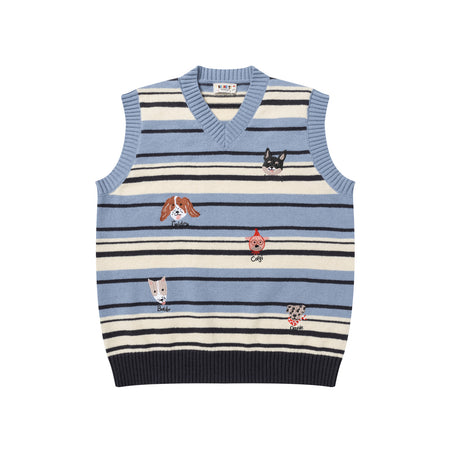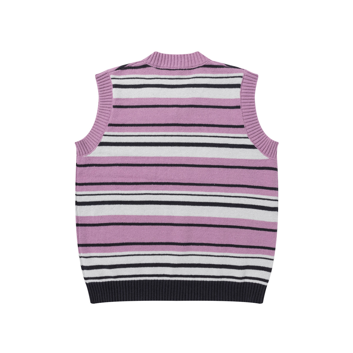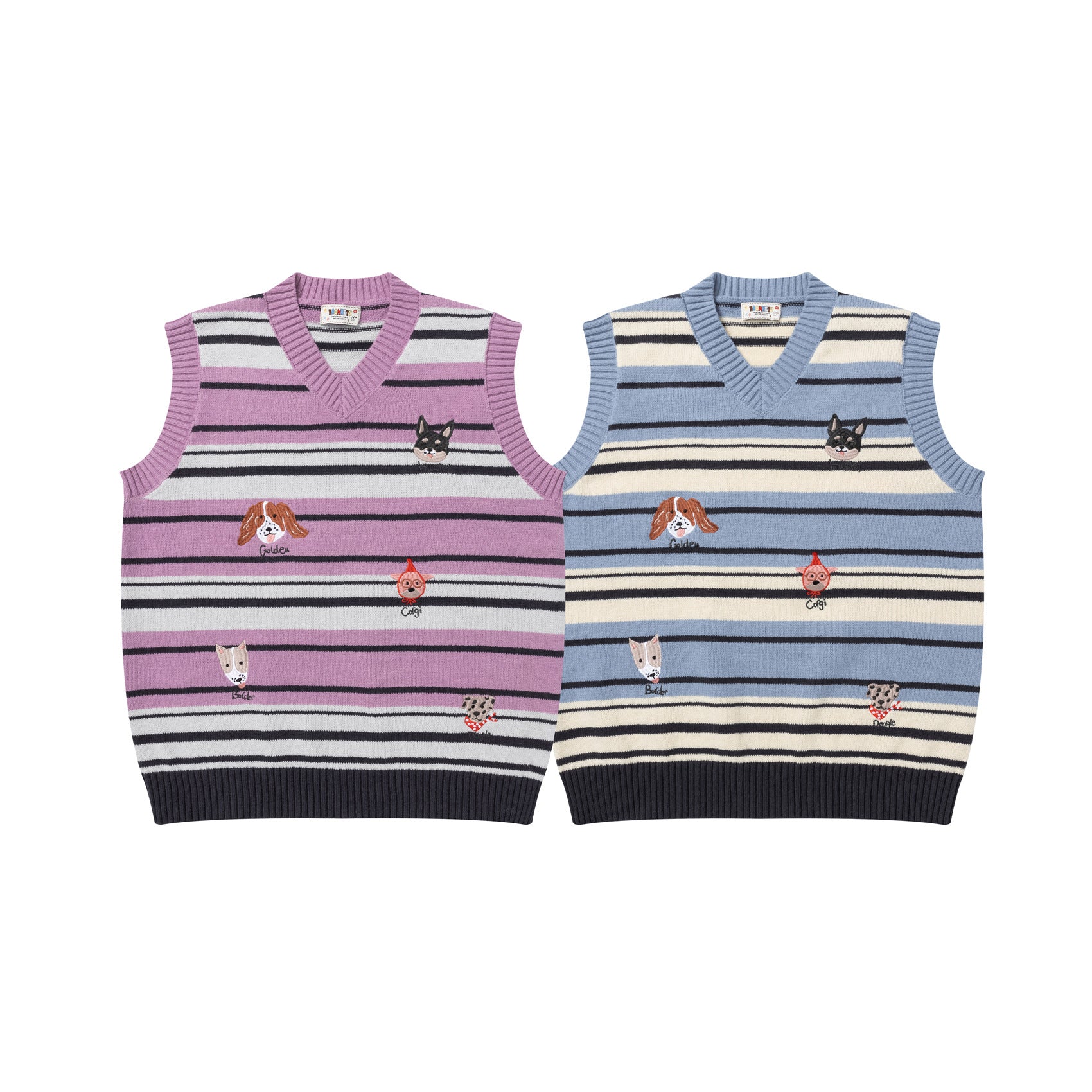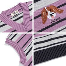 Make your wardrobe fun and stylish with this striped embroidered sleeveless sweater vest.