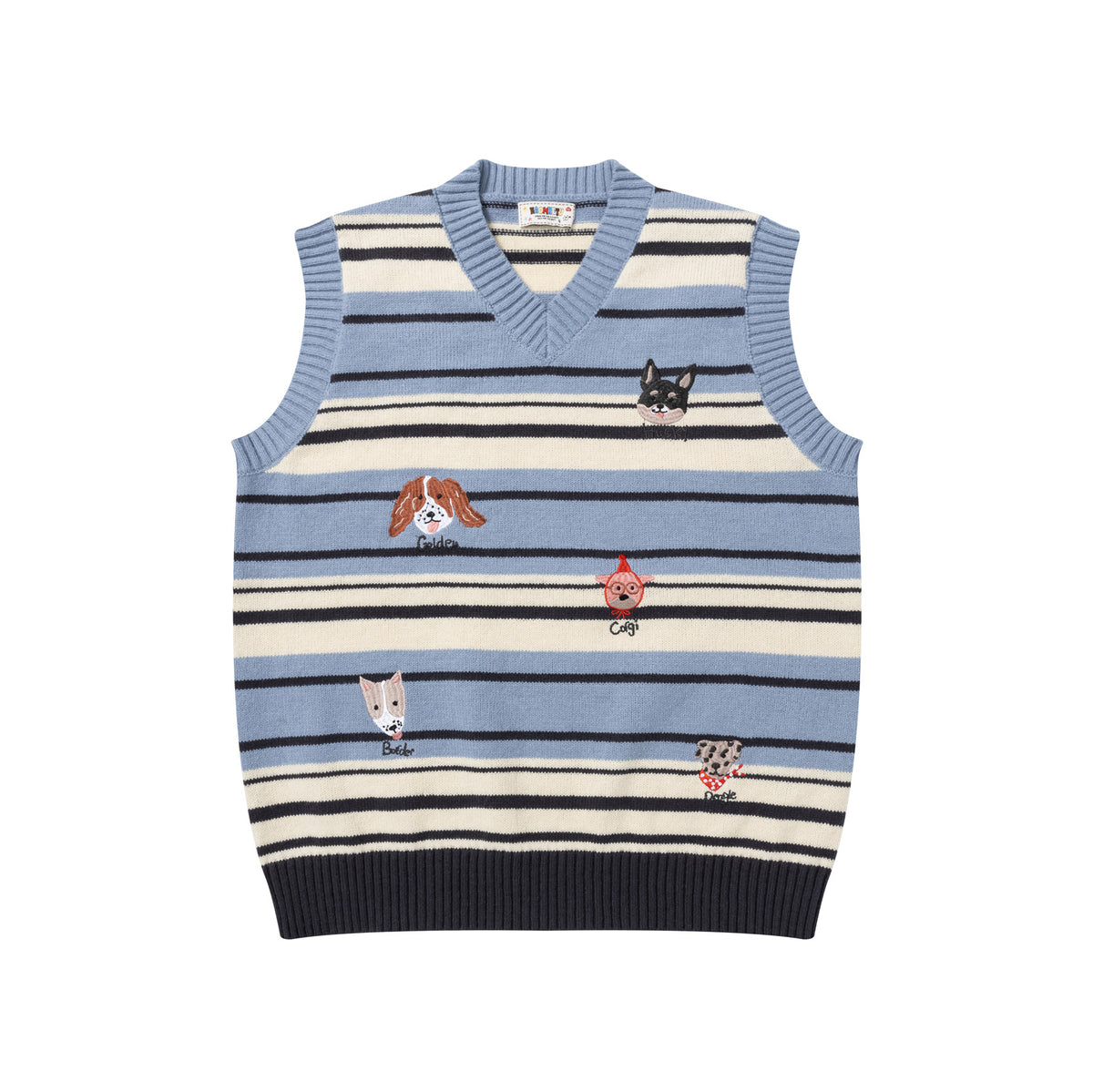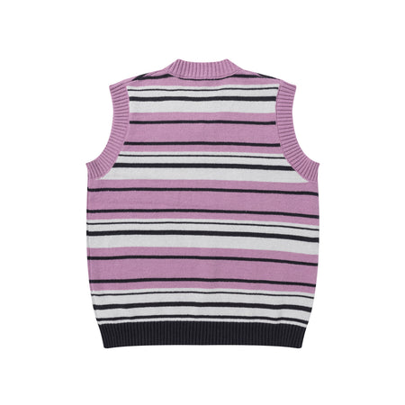 Sleeveless Sweater Vest – Retro Striped Letter Embroidery Knit