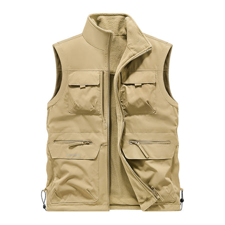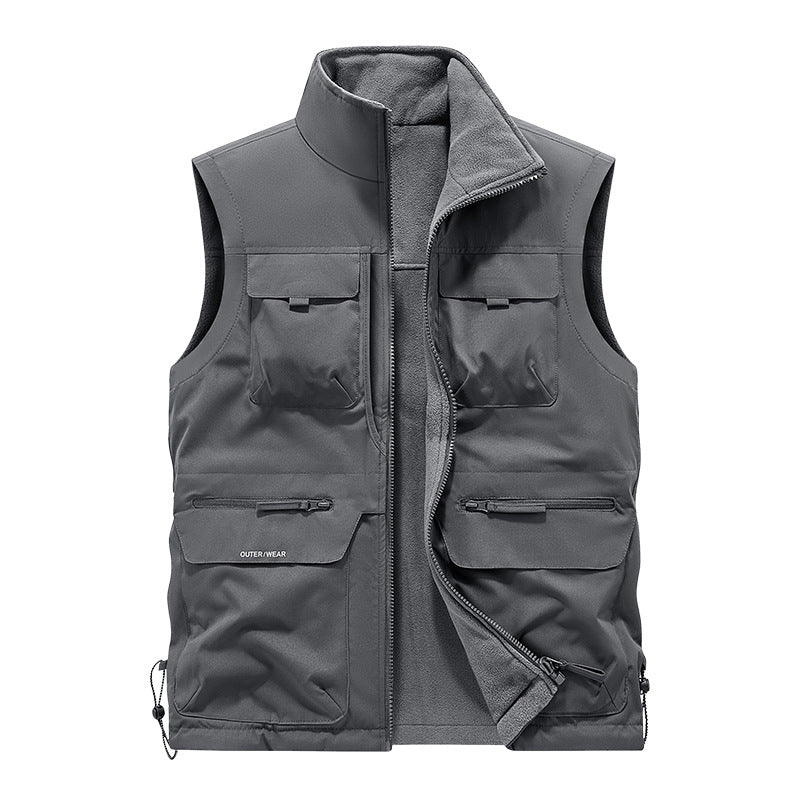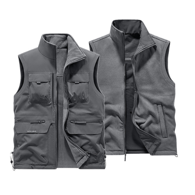 Stay warm this season ❄️ with this double-sided plush vest for men. Perfect for autumn 🍂 and winter ⛄, it combines thick polar fleece 🧶 with multiple pockets 🎒 for outdoor work, hiking, and casual wear.