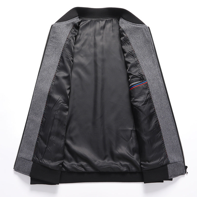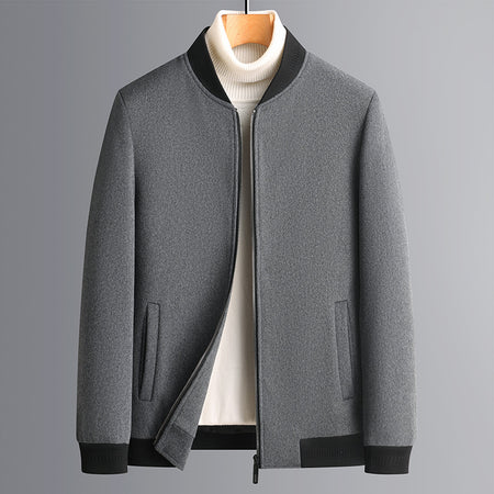 Men’s Herringbone Double-Faced Wool Coat – Short Baseball Collar Sheepskin Jacket