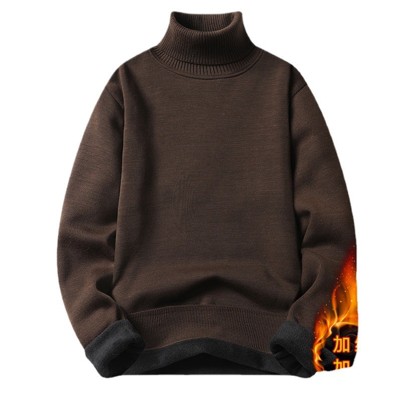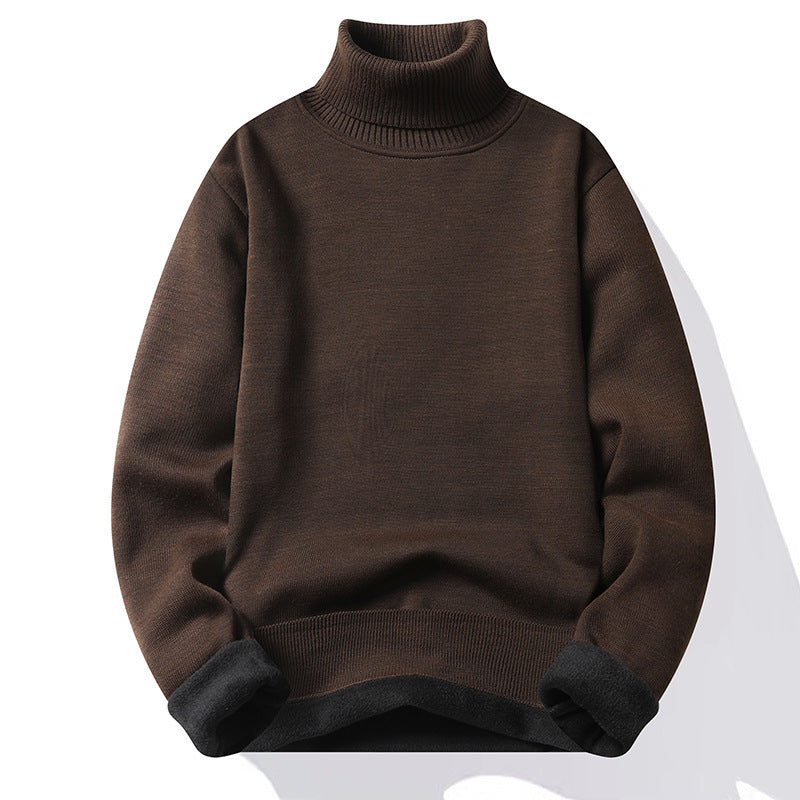 Men’s High Neck Fleece-Lined Sweater – Slim Fit Knit