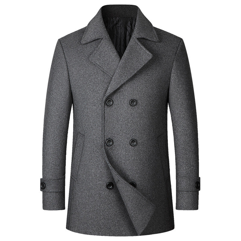 Men’s Double-Breasted Wool Coat – European-Style Mid-Length