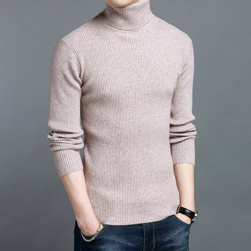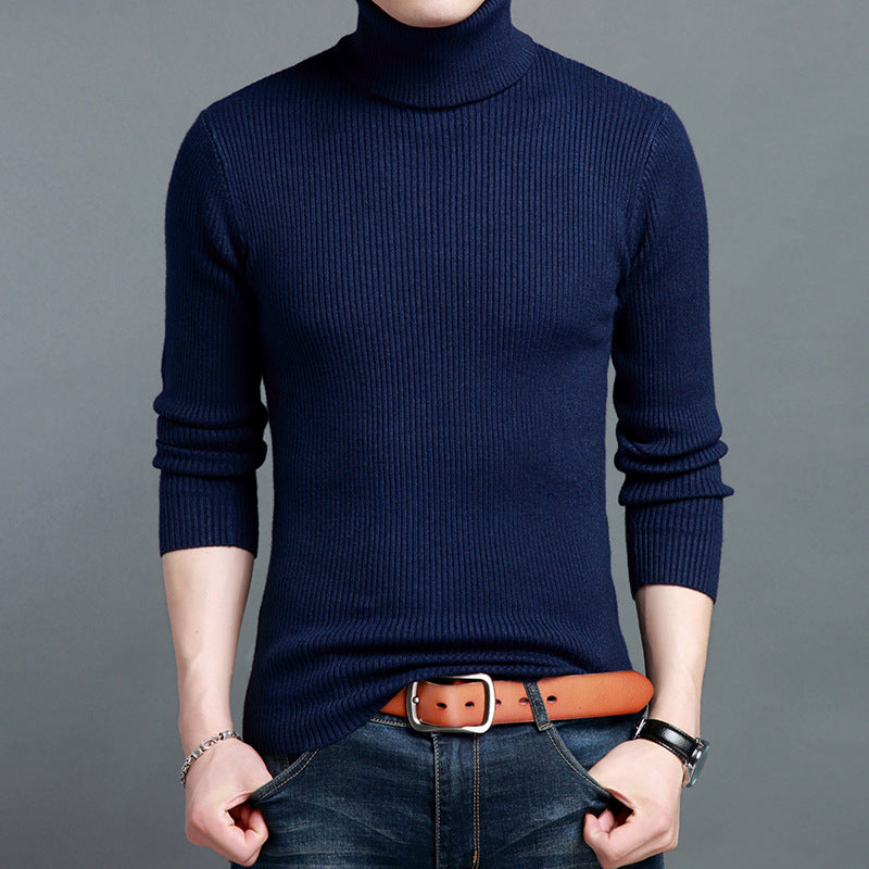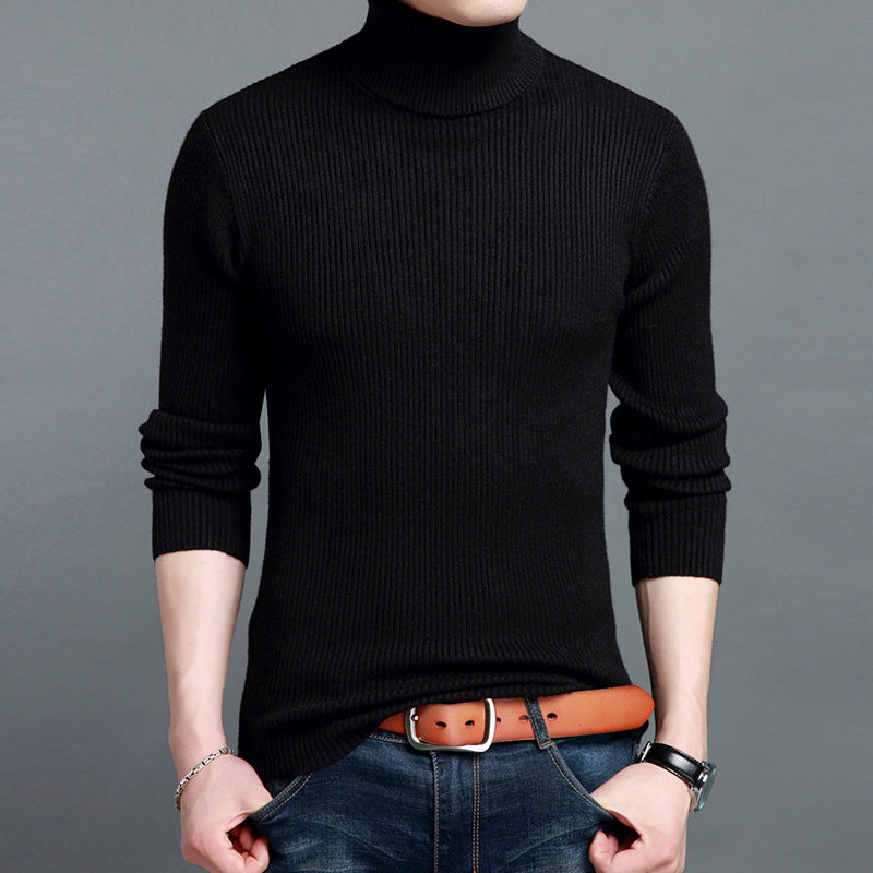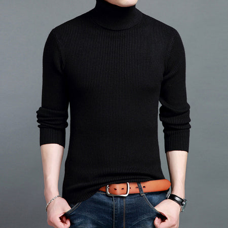 Korean Men’s High Collar Slim Pullover – Autumn/Winter