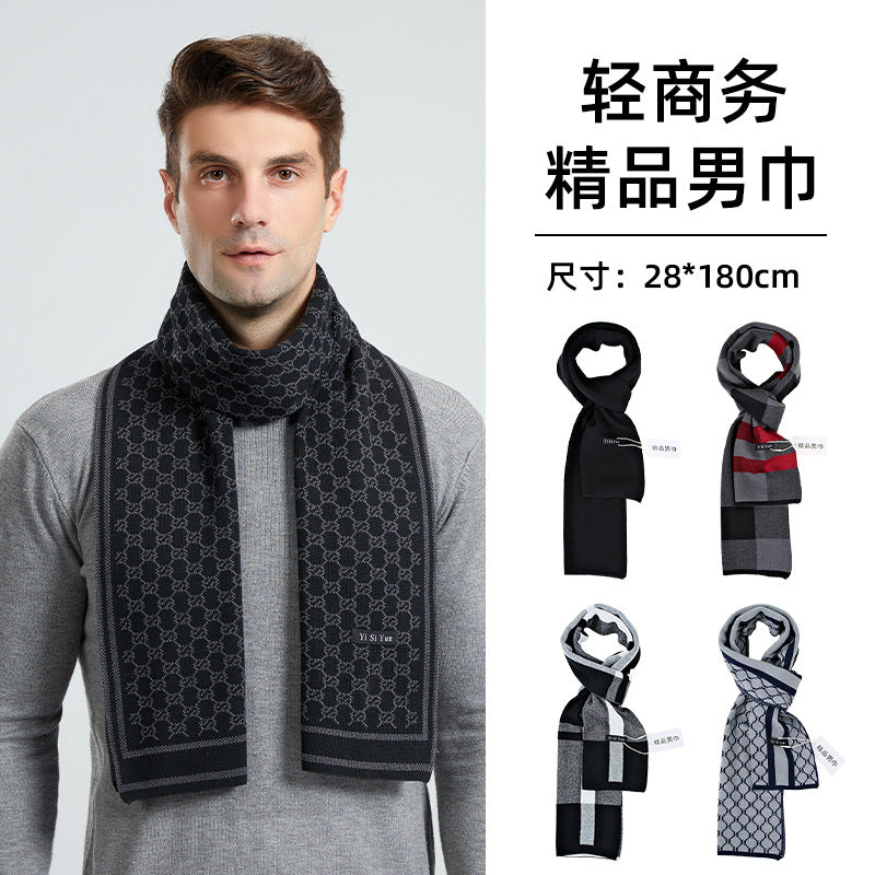 Men’s Cashmere Knit Scarf Winter Business Fashion