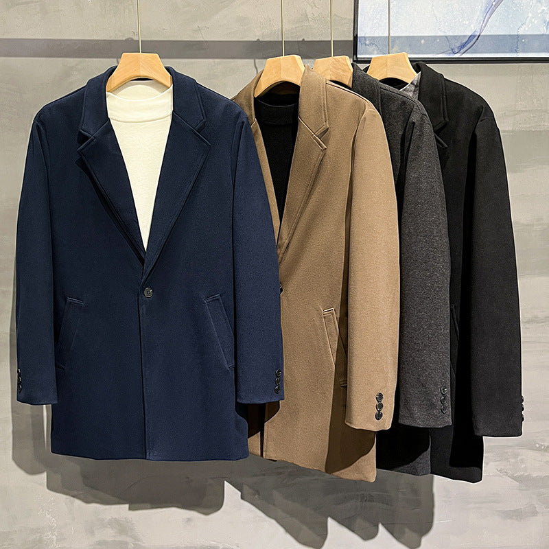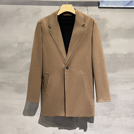 Stay trendy and warm with this Korean-style wool coat jacket. A casual suit design meets a woolen finish, making it perfect for autumn and winter fashion-forward men.