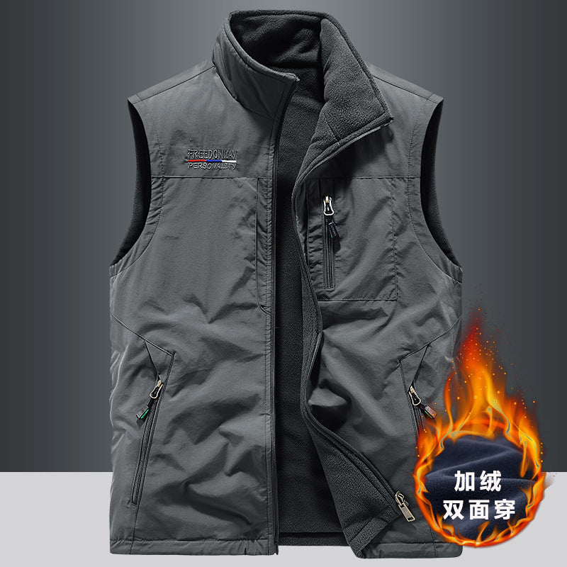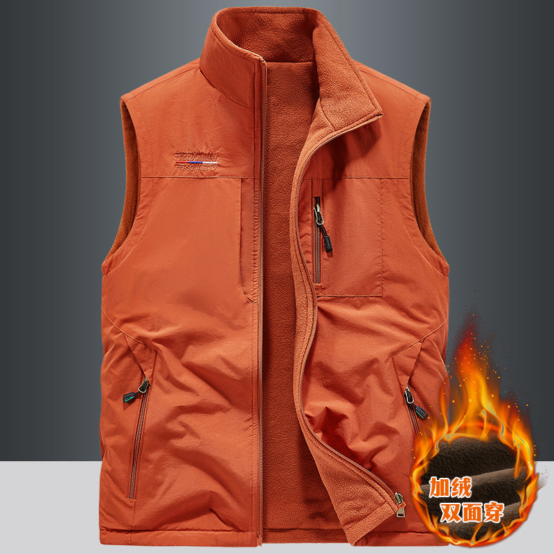 Upgrade your cold-weather wardrobe with this men’s reversible fleece vest, designed for autumn and winter outdoor activities. With its dual-sided design, you get two looks in one—perfect for both sports and casual wear.