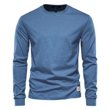 Stay sharp 🕺 with this autumn solid color long-sleeved top. Designed in a European-style cut, it’s the perfect high street or Hong Kong-style cotton inner T-shirt.