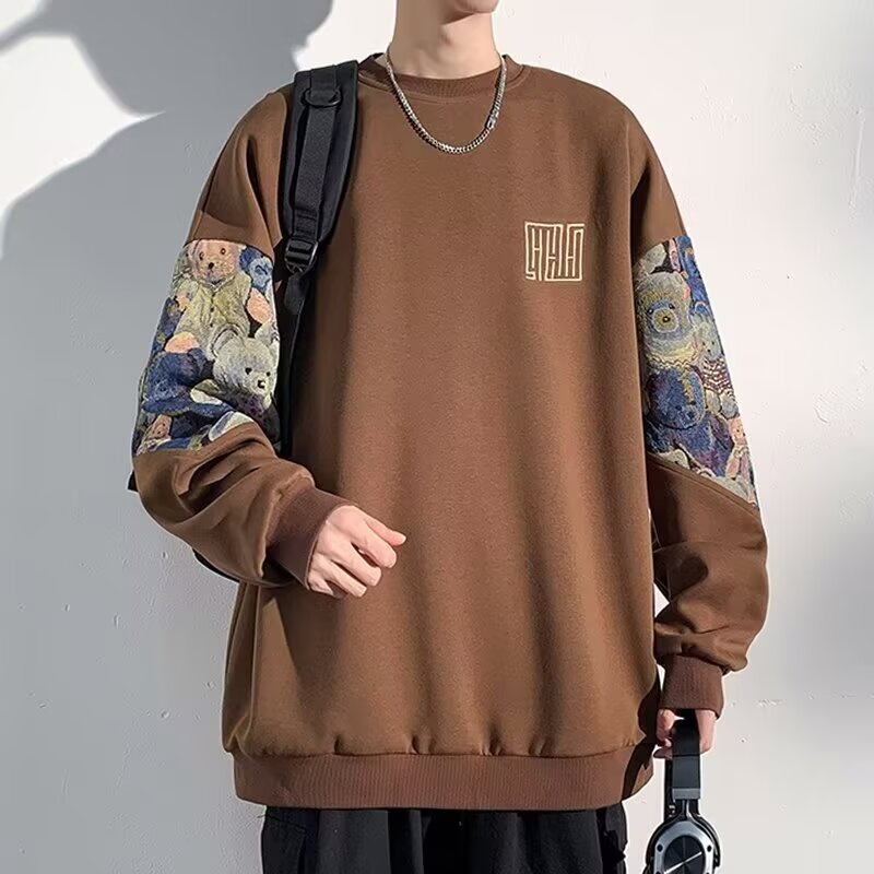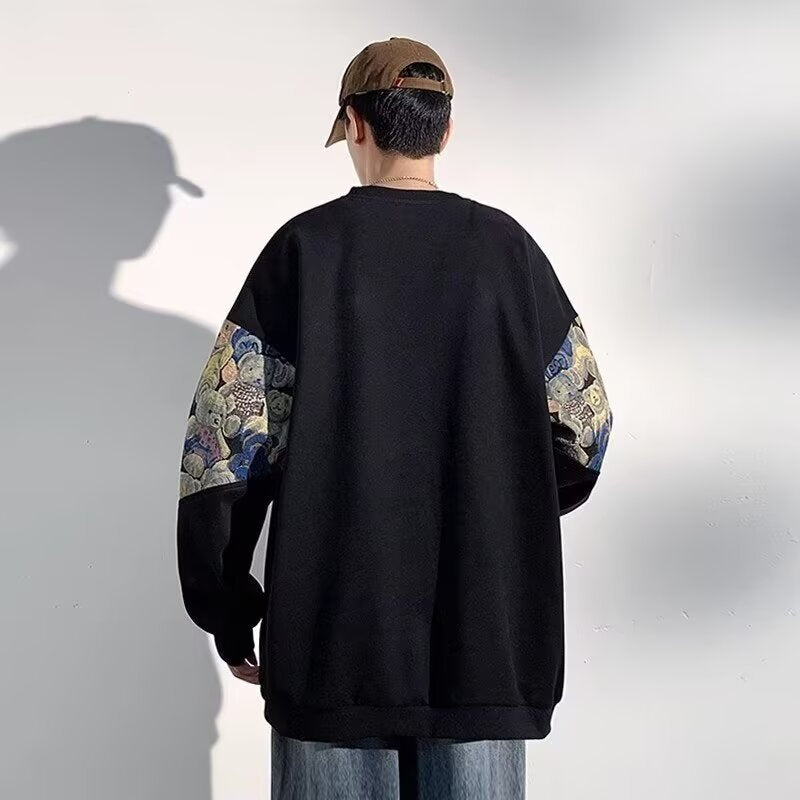 Playful and stylish, this bear splicing hooded sweatshirt is perfect for men who love a touch of personality in their fashion. With its retro design and oversized fit, it balances comfort with standout style. 🐻