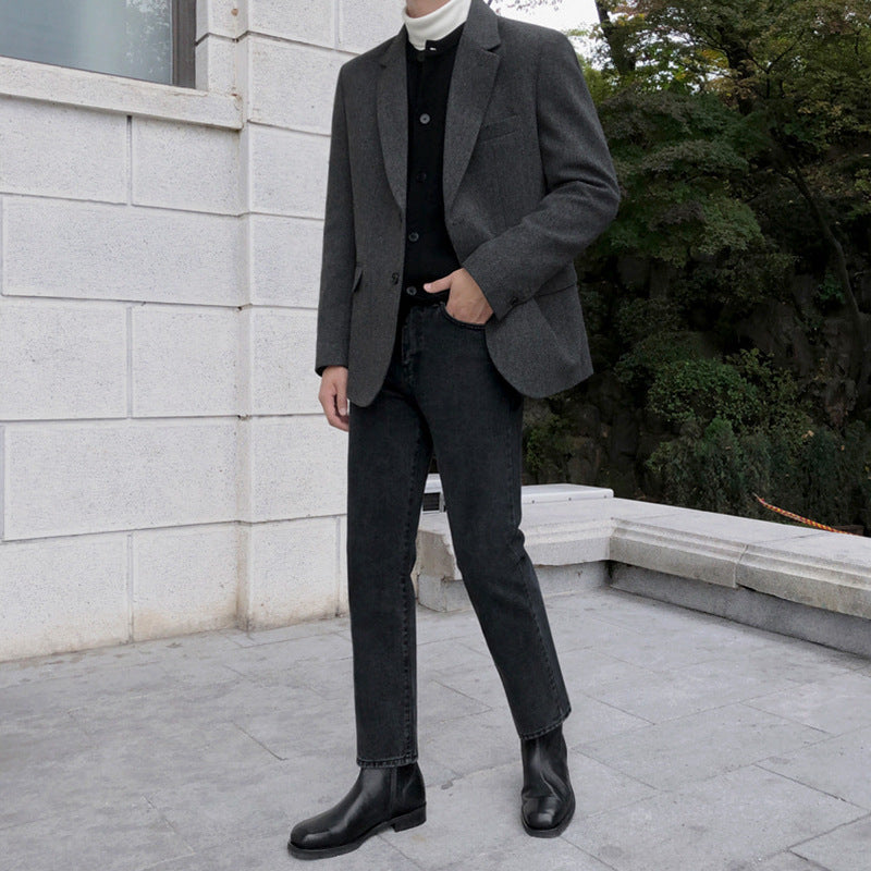 Korean Style Men’s Wool Suit Jacket – Autumn/Winter Thick