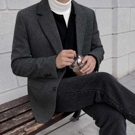 Stay sharp this season with this Korean-style men’s wool suit jacket. Designed with a herringbone pattern and crafted for autumn and winter wear, it offers warmth, comfort, and fashion-forward elegance in one.