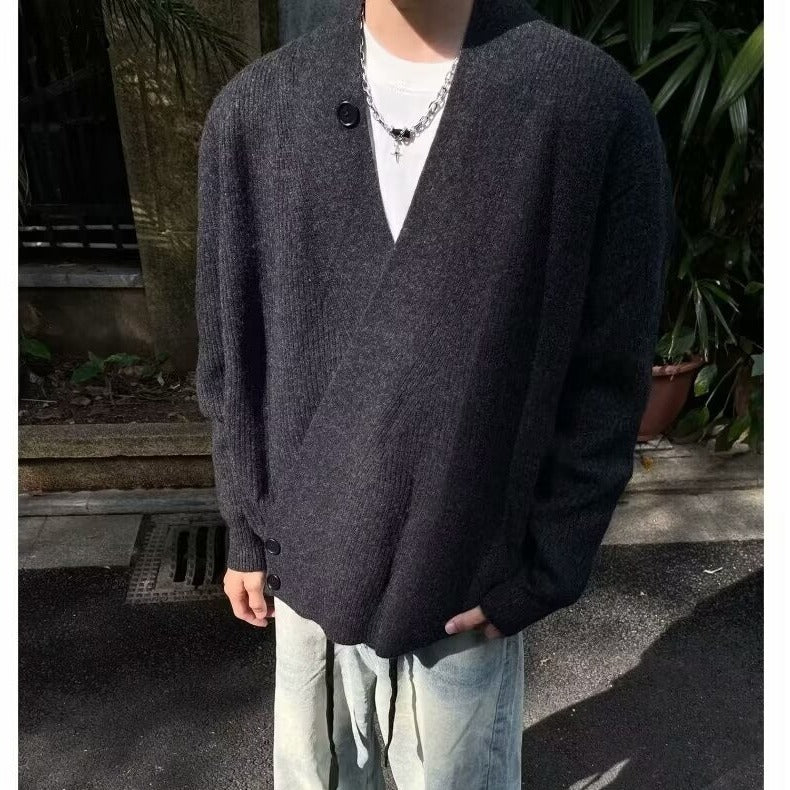 Elevate your look with this men’s V-neck cardigan sweater, inspired by old money fashion. Its robe-style design and lazy high-end vibe bring sophistication to everyday wear. Perfect for spring and autumn, it’s both stylish and comfortable.