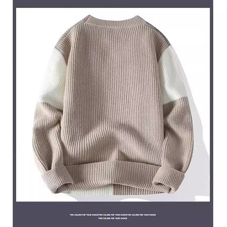 Men’s Contrast Color Knitted Sweater – Winter Warm Trend