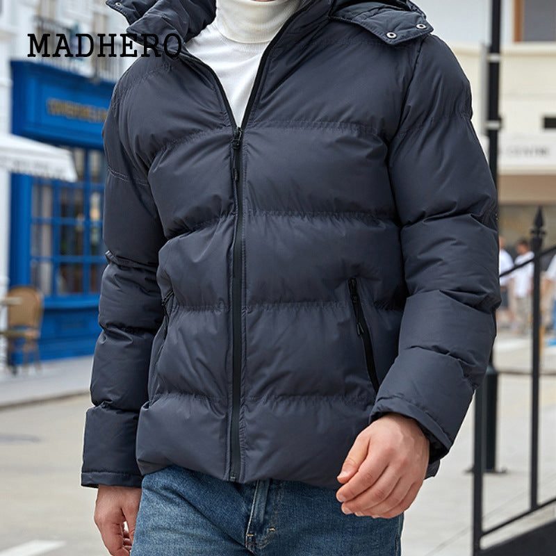 Stay dry and cozy with our men’s plus size cotton-padded puffer jacket, designed with waterproof protection and thick insulation. A practical choice for outdoor use, this imitation down jacket provides both comfort and reliability in chilly weather.