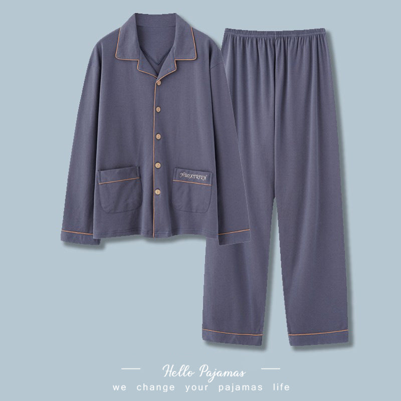 Men’s Cotton Pajamas Set Thin Long Sleeve Plus Size