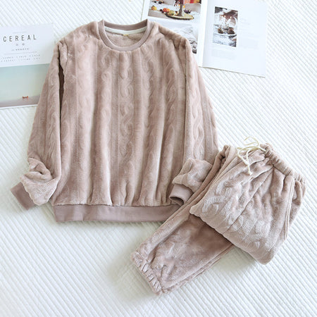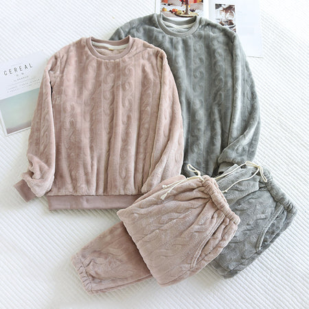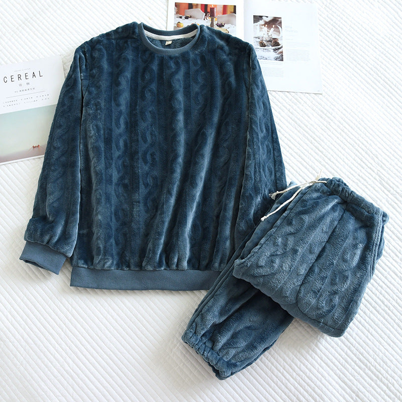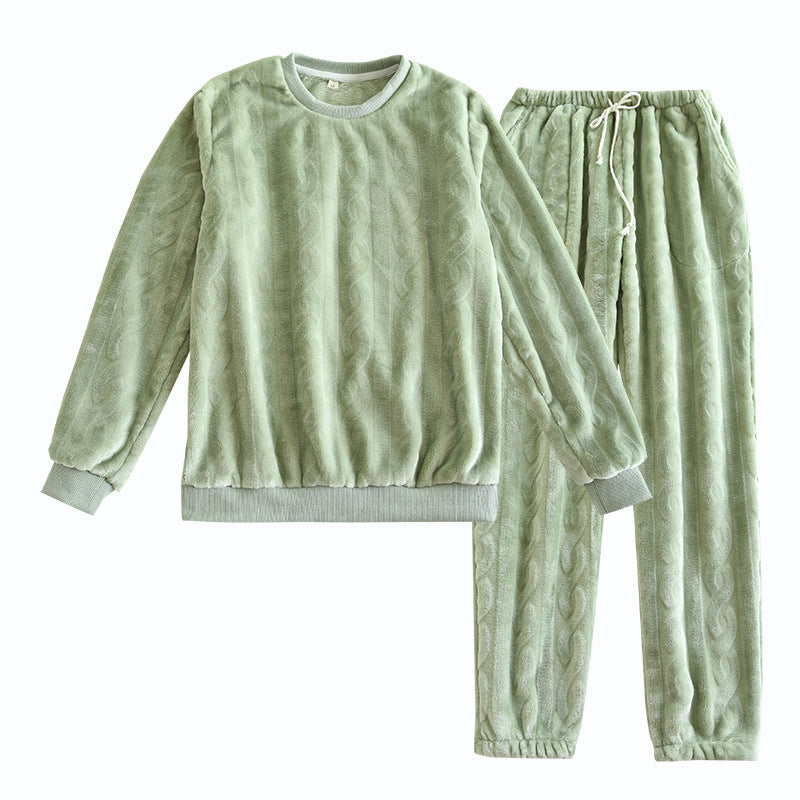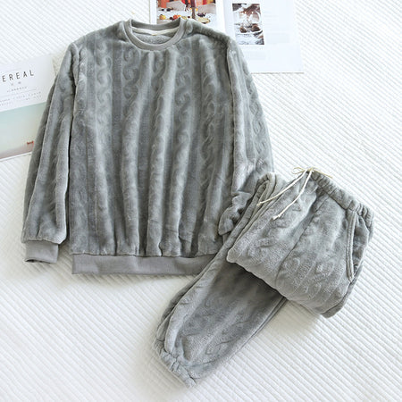 Couple’s Winter Pajamas Set Flannel Coral Fleece Warm
