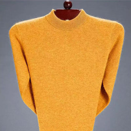 Keep the cold at bay with this men’s half turtleneck knitwear sweater, designed for middle-aged men seeking warmth and understated style. Its thickened pure color knit makes it a reliable companion for autumn and winter.