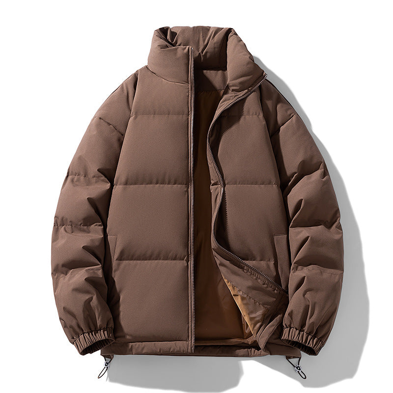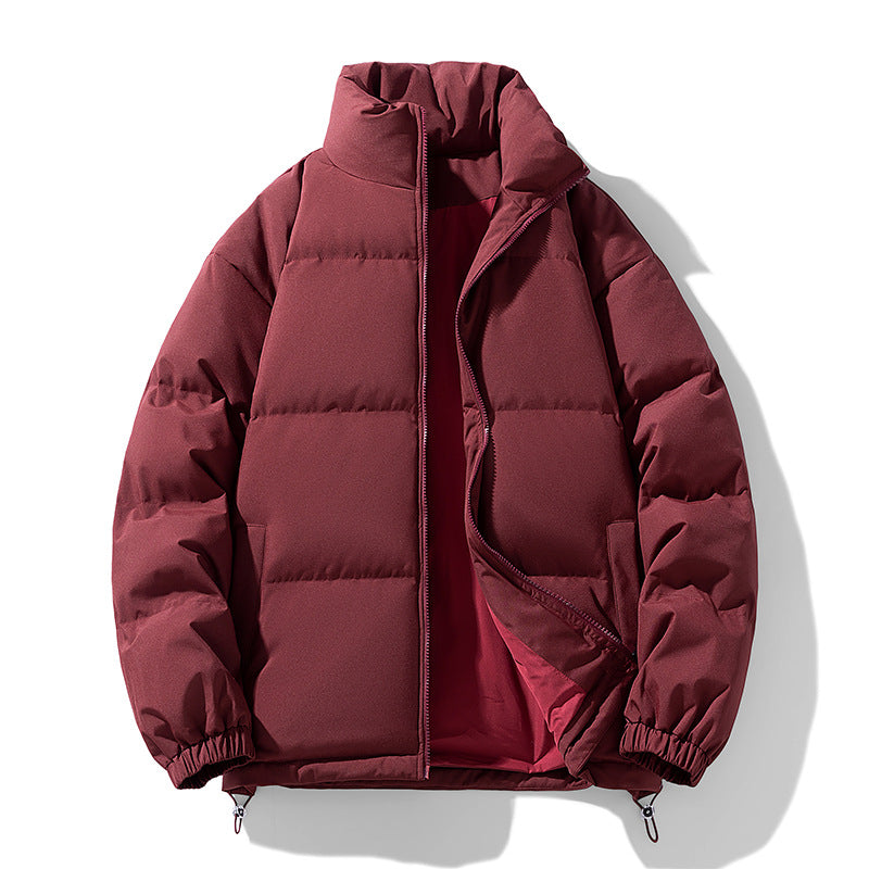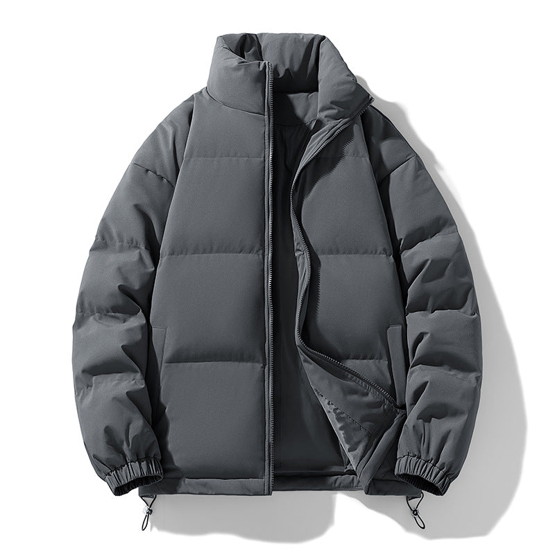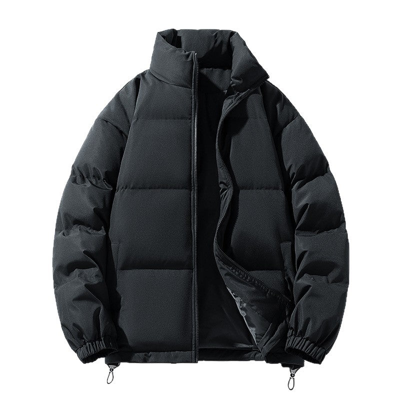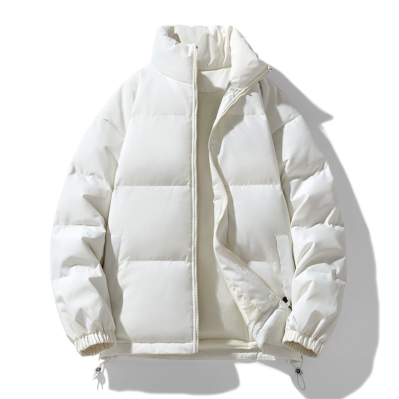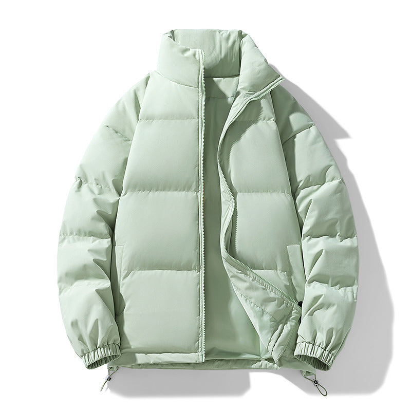 Unisex Stand Collar Puffer Jacket – Solid Color Winter Coat