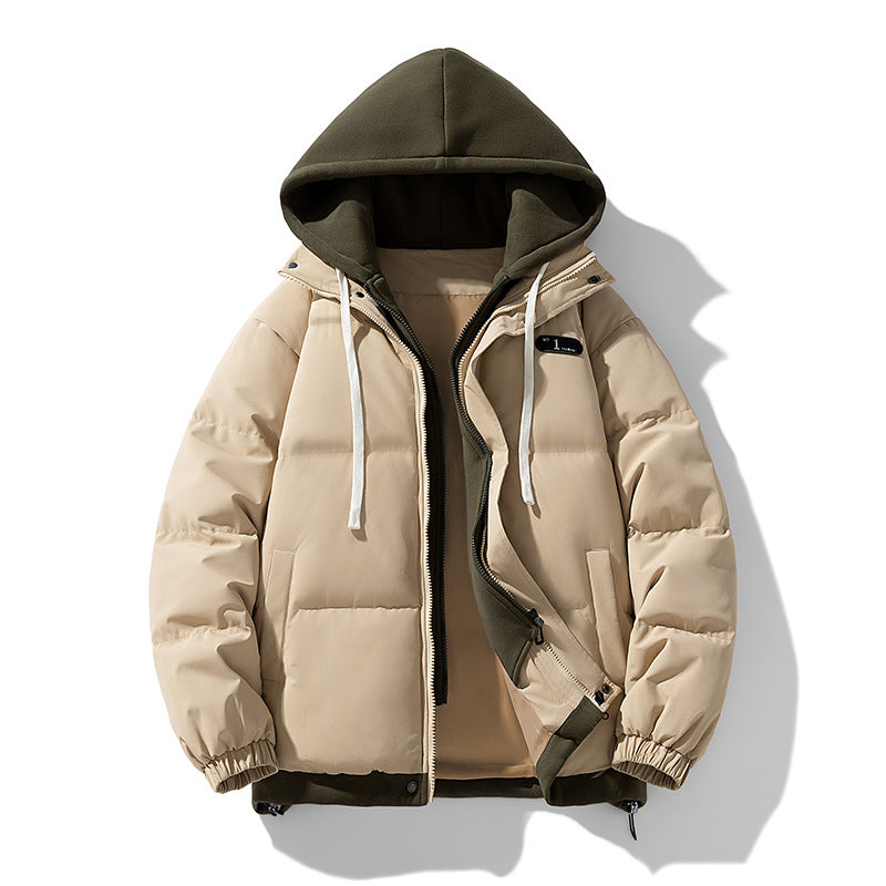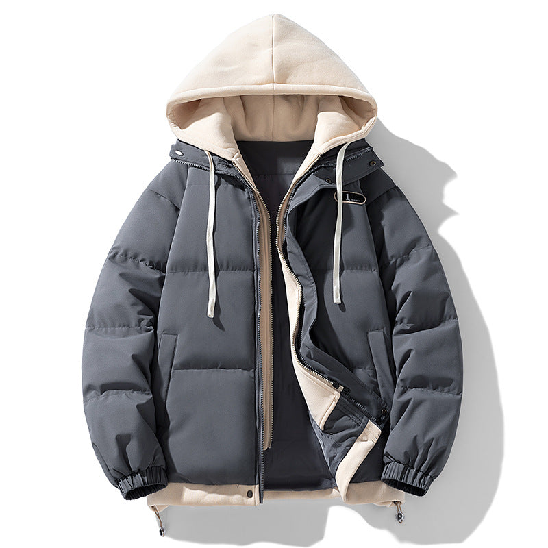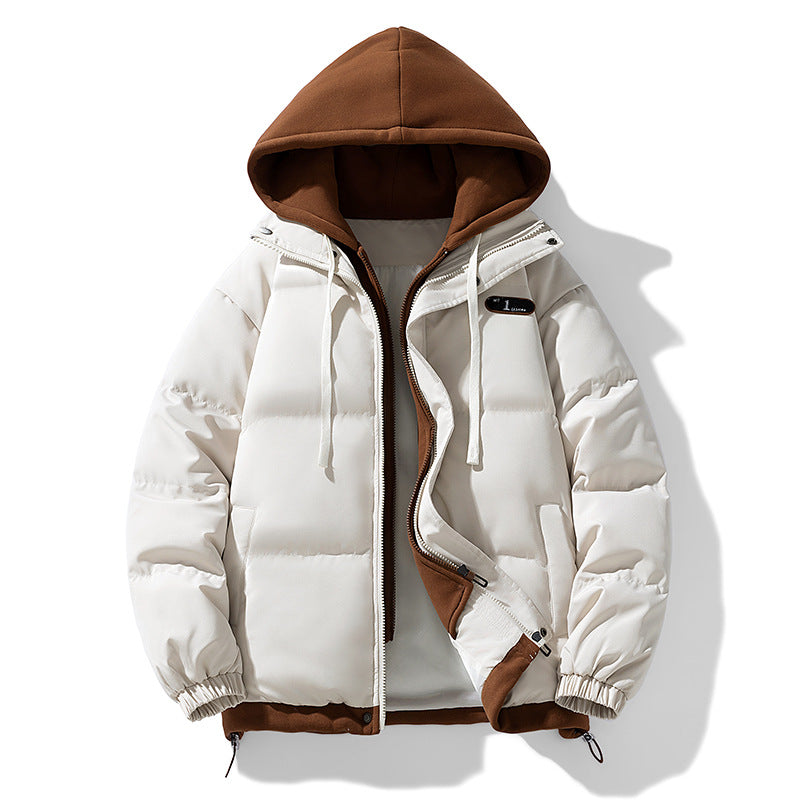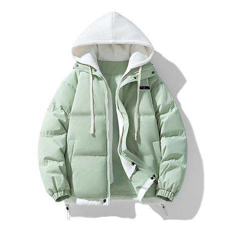 This puffer jacket captures the trendy oversized aesthetic that’s taking over winter fashion. Its fake two-piece detail makes it look layered and stylish, while the insulated cotton keeps you cozy. Perfect for students, travelers, or couples who love matching outfits.