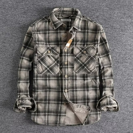 Retro Plaid Corduroy Mens Shirt 2025