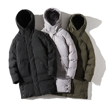 Men’s Mid-Length Hooded Cotton-Padded Jacket – Thickened Winter Coat