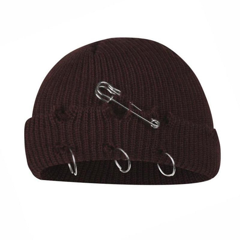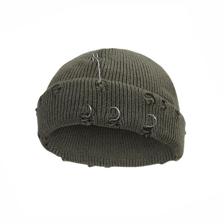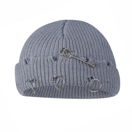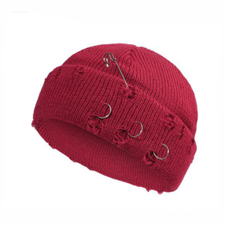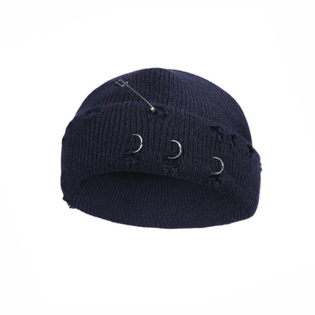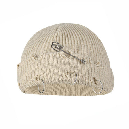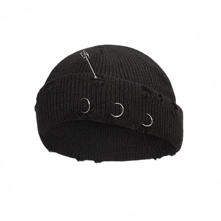Punk Beanie – Iron Ring Hole-Pierced Knitted Hat