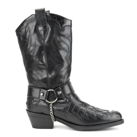 Unleash your inner rockstar with these Dark Rock Crocodile-Pattern Boots ⚡👢. Designed with bold textures, metal buckle chains, and mid-calf height, they give you a rebellious edge perfect for concerts, motorbike rides, or making a daring statement on Kathmandu streets.