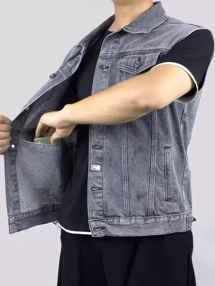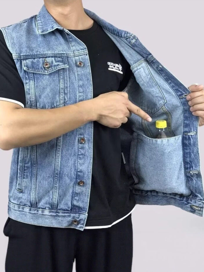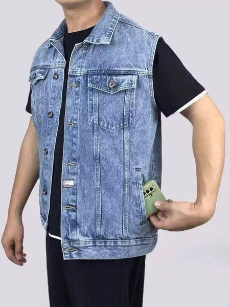 Men’s Slim Fit Denim Vest – Korean Style Retro Waistcoat