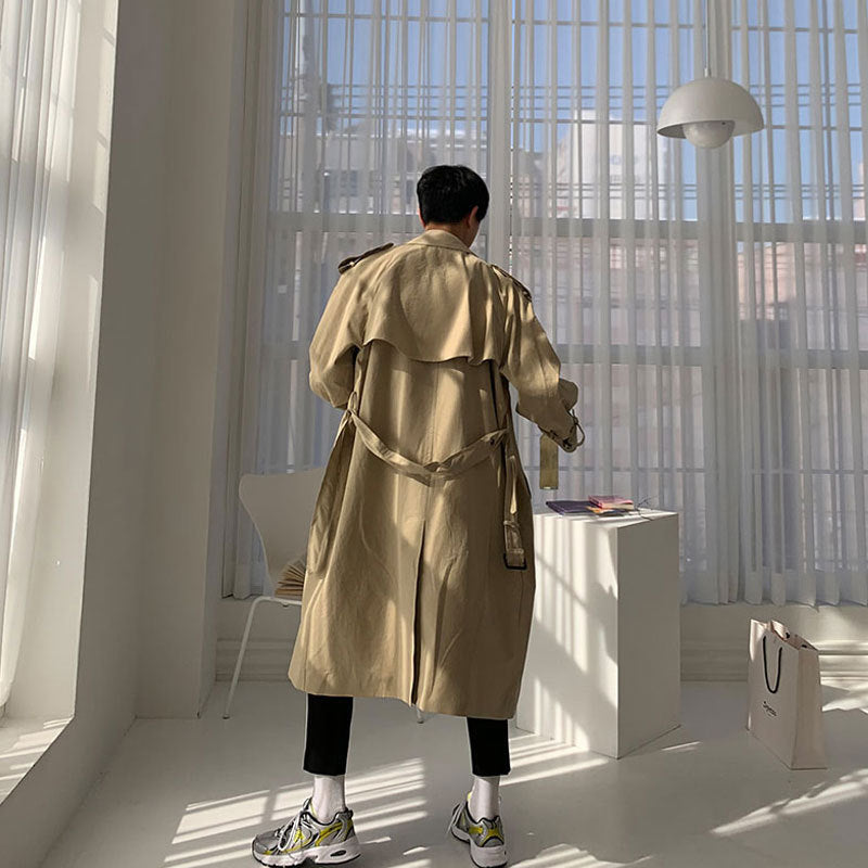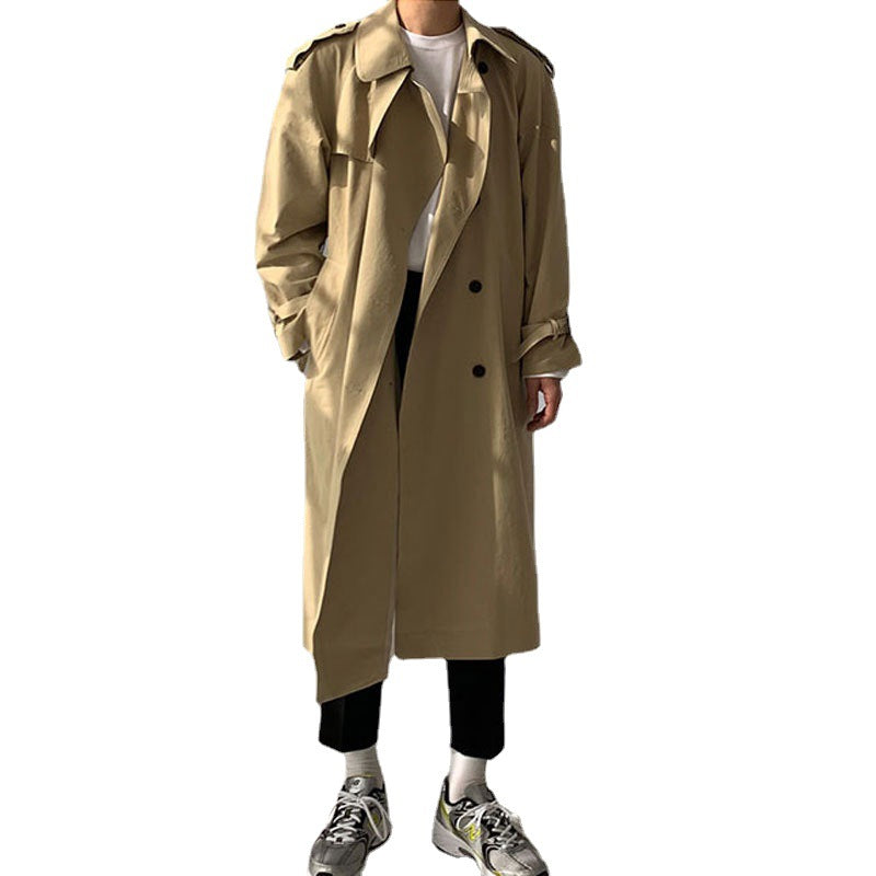 Men’s Double-Breasted Over-the-Knee Coat – Korean Casual
